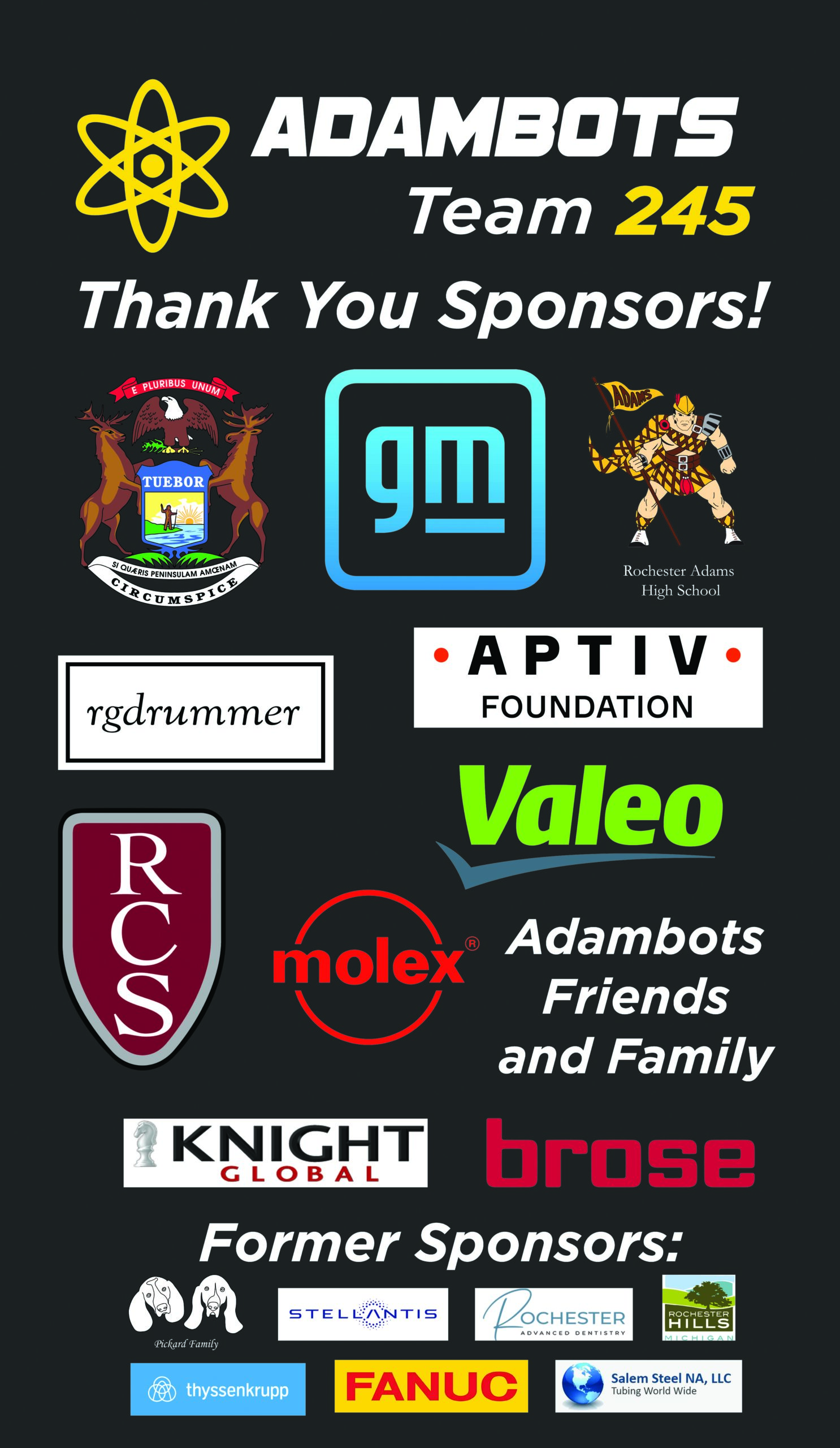 We’d like to thank past Sponsors for their support. Including: Valeo Thermal Systems, JTEKT, DoD Stem, Emagine Entertainment, Newmak, Bosch, DTE Energy, Jim Michlas, Karen Bennett, and Siemens VDO.
